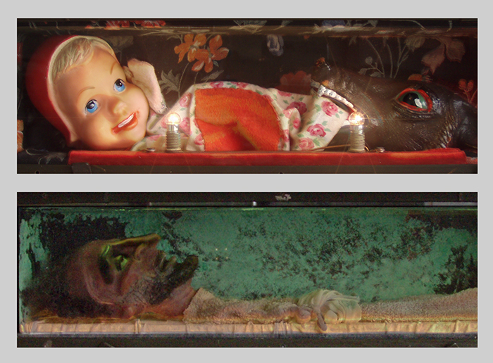 links: 2 handpuppen, stoffausschlag, glühlampen